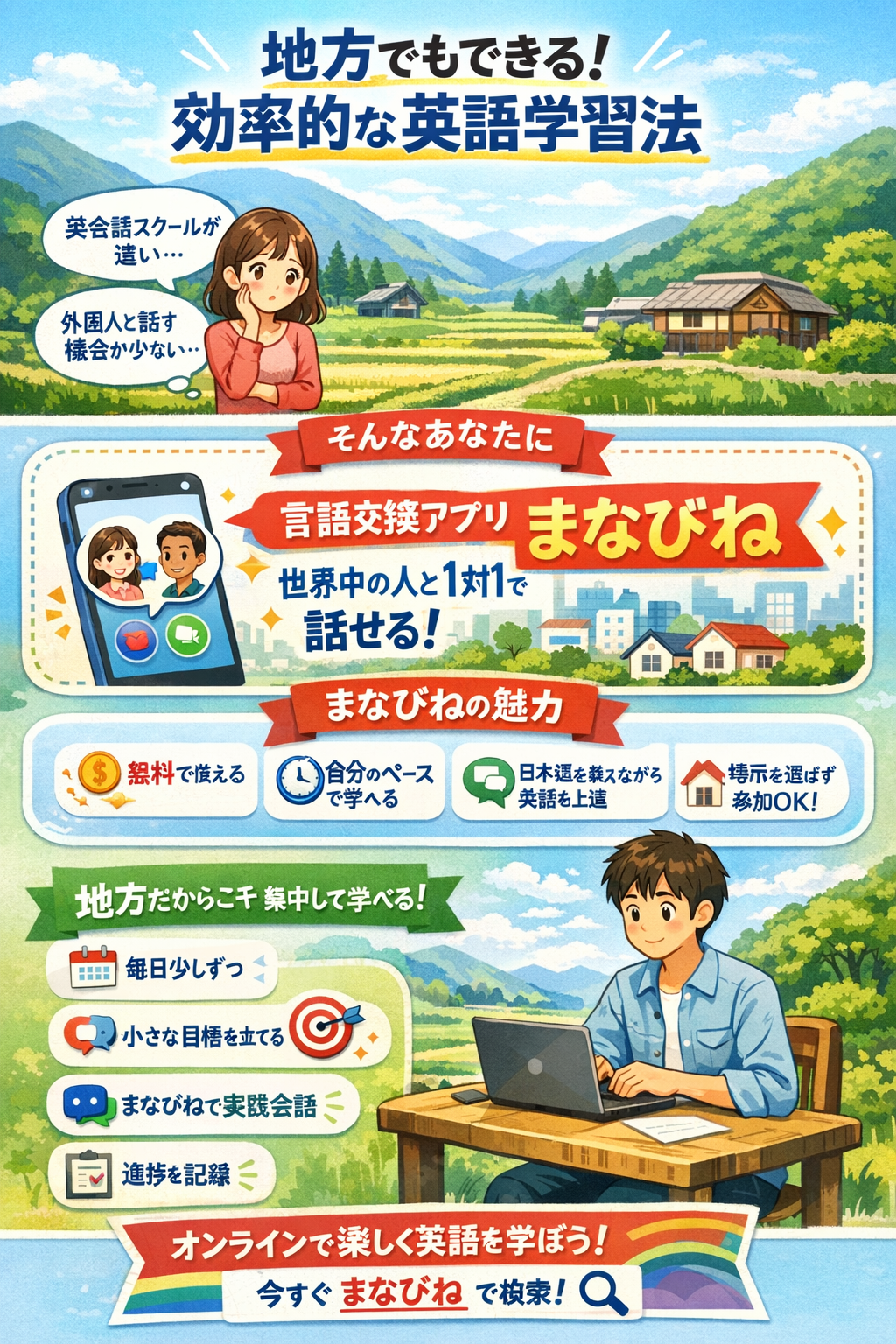 「都会に住んでいないから、英語学習のチャンスが少ない…」 「英会話教室やイベントは遠いし、交通費もかかる」 「結局ひ…